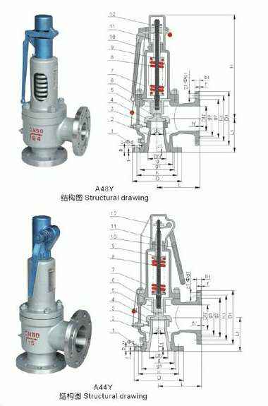 A48Y带扳手弹簧全启式安全阀适用于工作温度≤350℃的蒸汽、空气等介质的设备和管路上。
